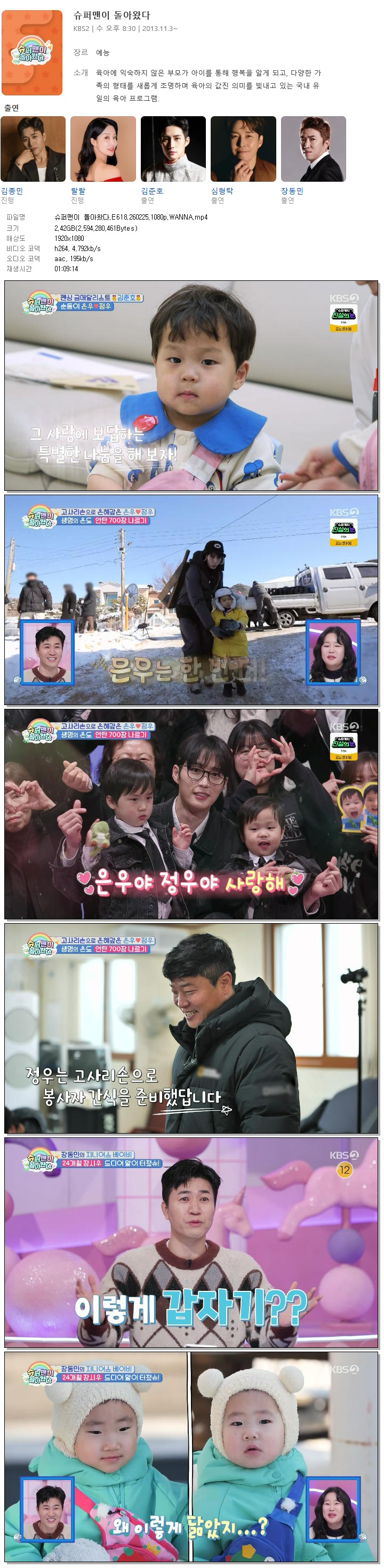 '슈퍼맨이 돌아왔다' 다른 회차도 함께 보실 수 있습니다.