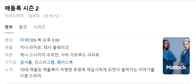 ico[미드] 매틀록 시즌2 1화.2화.Matlock.2025.1080p.한글자막/