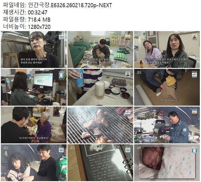 | 인간극장.E6326.260218.720p-NEXT.mp4 | 718.4 M | - | 1280x720 |