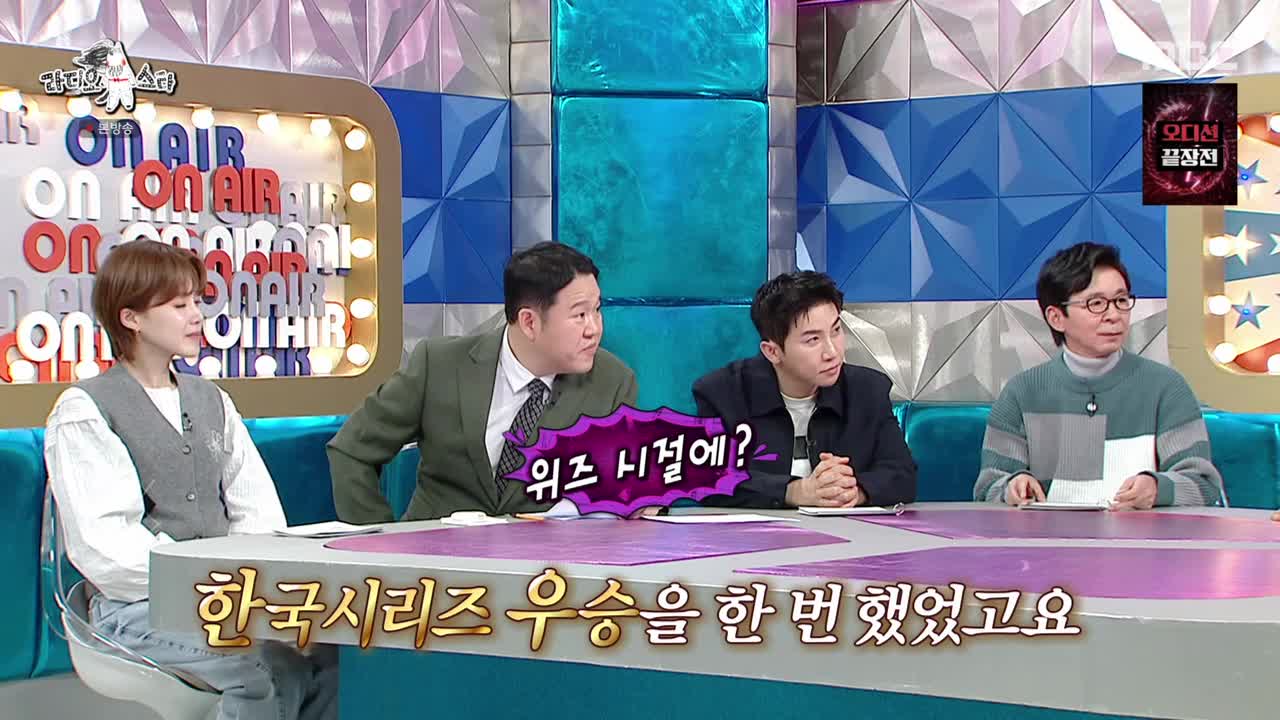 '이 구역 파이널 보스! 가즈아~' 특집. 돌직구로 타자들의 방망이를 얼어붙게 만든 전설의 마무리 투수! 오승환. 36년 차 조폭 연기의 대가이자 믿고 보는 명품 배우! 이철민. 슬픈 가사와 독보적인 음색으로 눈물 쏙 빼게 만드는 발라드 음원 강자! 조현아. 유행어 남발하며 개콘 황금 전성기를 선도하던 유행어 제조기! 양상국. 각 분야에서 특별한 기량 뽐내며 이름 날리는 장르별 최강자 4인의 '끝판왕' 토크! '은퇴 후 야구 해설위원으로 변신해 끝내주는 해설하러 온 영원한 끝판대장' 오승환!
