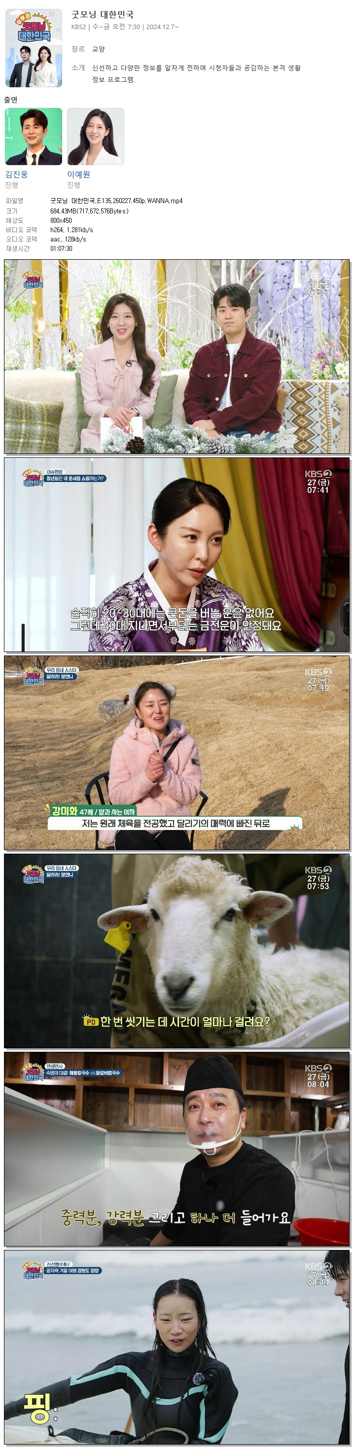 [KBS2] 굿모닝 대한민국.E135.260227.450p.WANNA[김진웅, 이예원].mp4 684.4 M 01:07:30 800x450