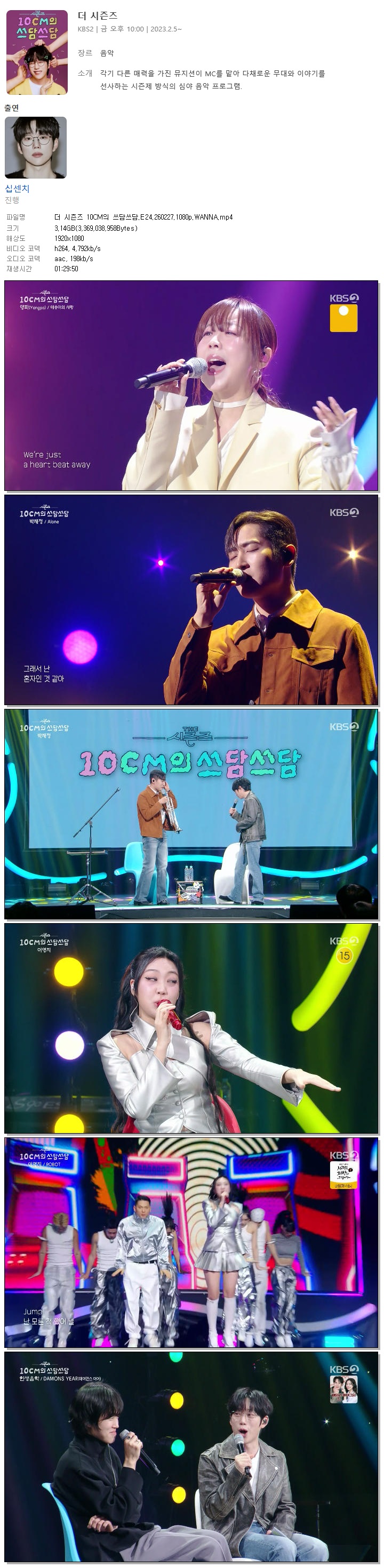 [KBS2] 더 시즌즈 10CM의 쓰담쓰담.E24.260227.1080p.WANNA[박재정, 이영지].mp4 3.1 G 01:29:50 1920x1080