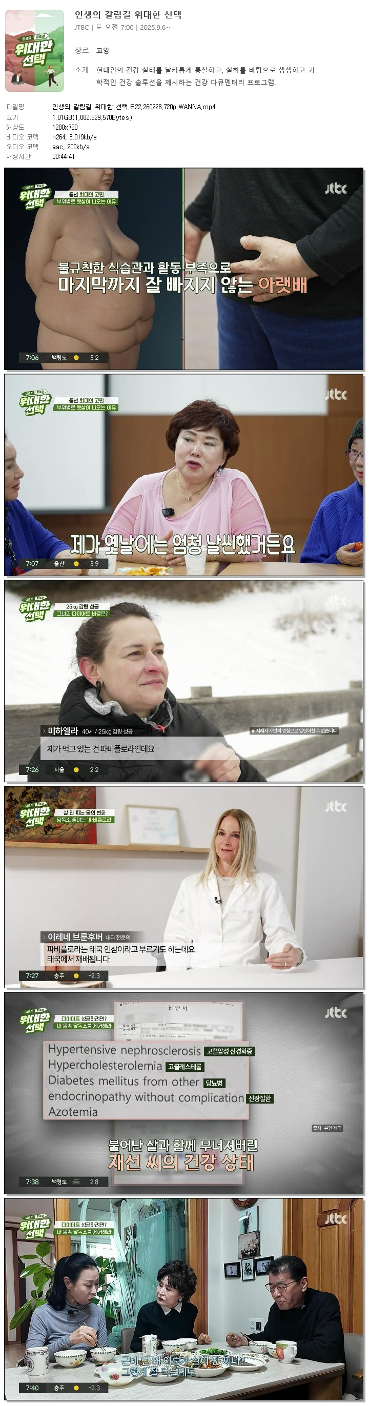 [JTBC] 인생의 갈림길 위대한 선택.E22.260228.720p.WANNA.mp4 1 G 00:44:41 1280x720
