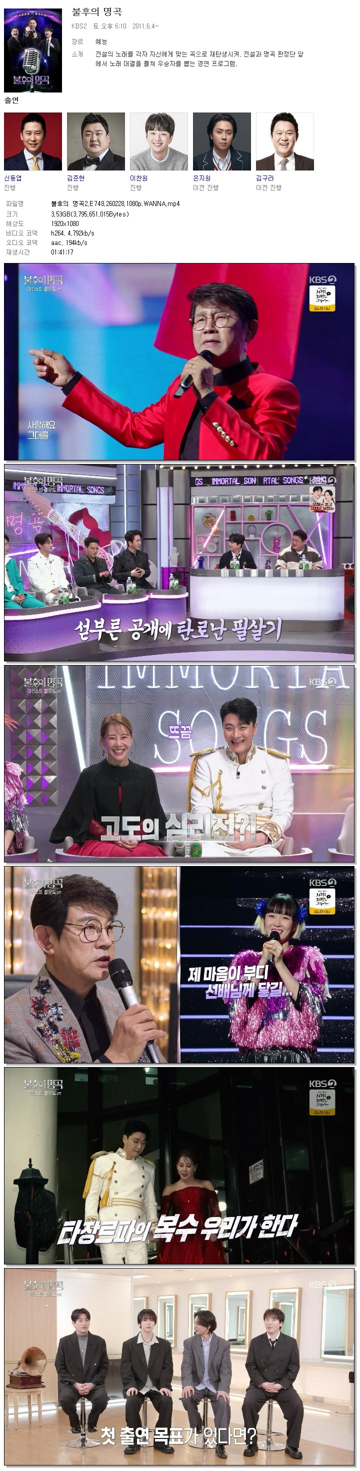 [KBS2] 불후의 명곡2.E748.260228.1080p.WANNA[설운도].mp4 3.5 G 01:41:17 1920x1080