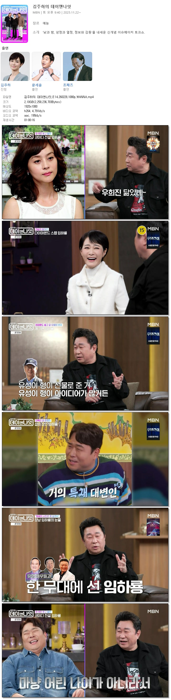 [MBN] 김주하의 데이앤나잇.E14.260228.1080p.WANNA[임하룡].mp4 2.1 G 01:00:16 1920x1080