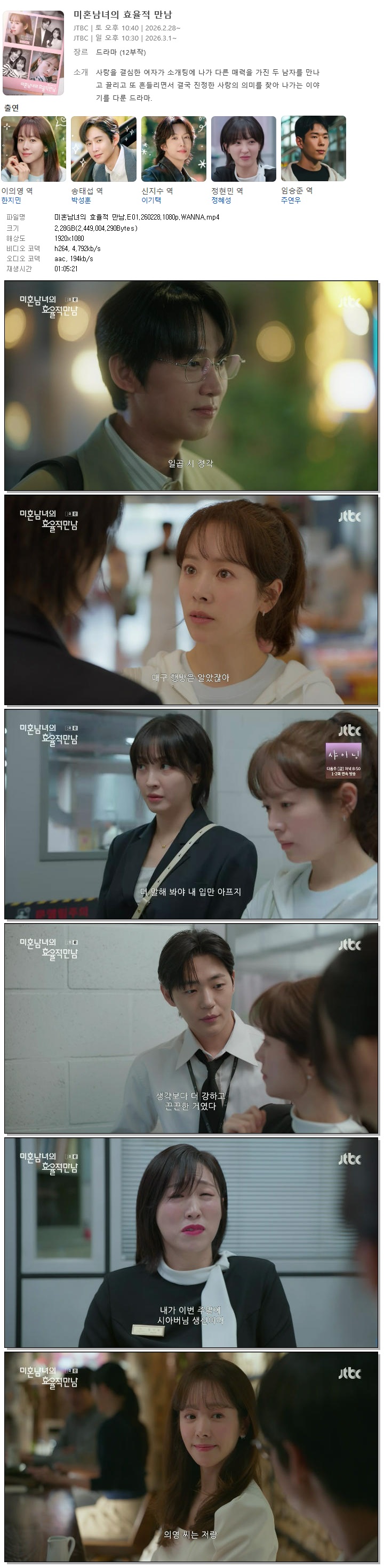 [JTBC] 미혼남녀의 효율적 만남.E01.260228.1080p.WANNA[한지민, 박성훈] 다시보기 토렌트