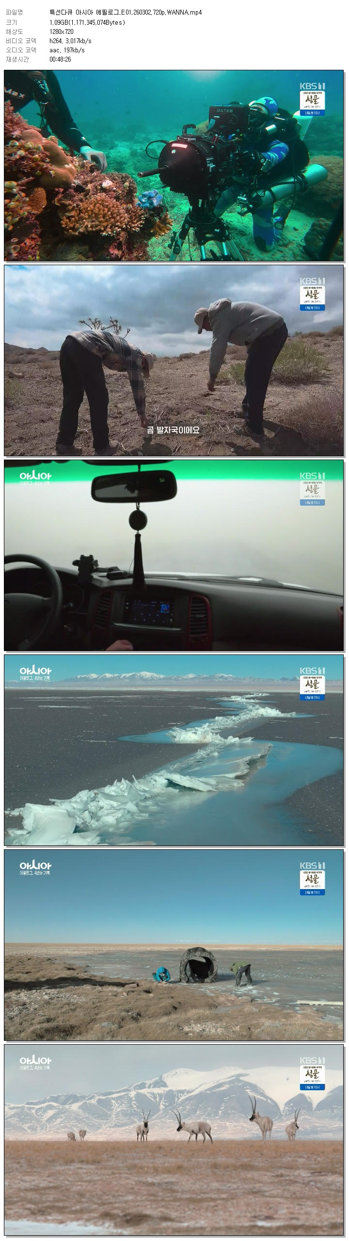 | [KBS1] 특선다큐 아시아 에필로그.E01.260302.720p.WANNA.mp4 | 1.1 G | 00:48:26 | 1280x720 |
