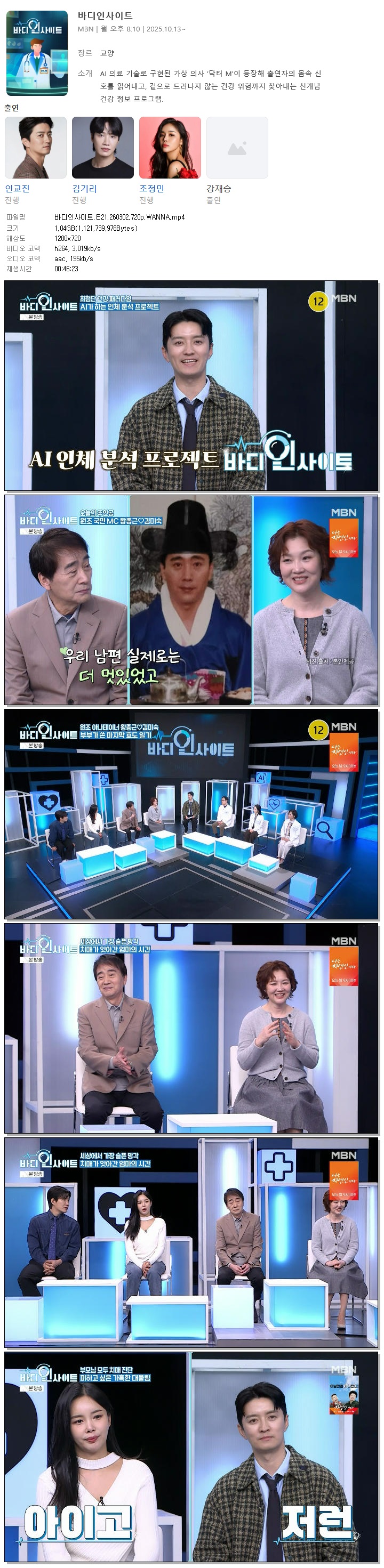 [MBN] 바디인사이트.E21.260302.720p.WANNA[인교진, 김기리].mp4 1 G 00:46:23 1280x720