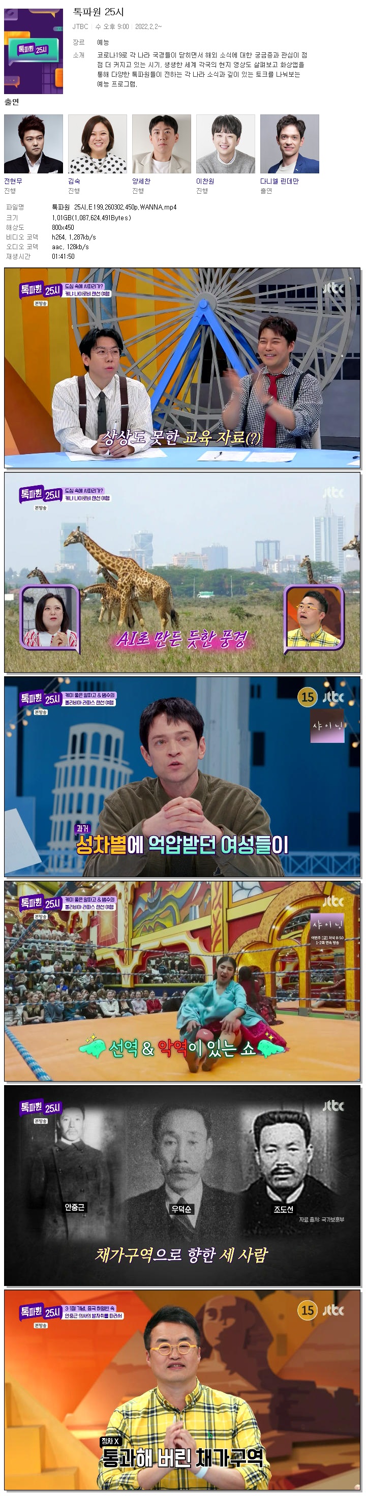 | [JTBC] 톡파원 25시.E199.260302.450p.WANNA[최태성].mp4 | 1 G | 01:41:50 | 800x450 |