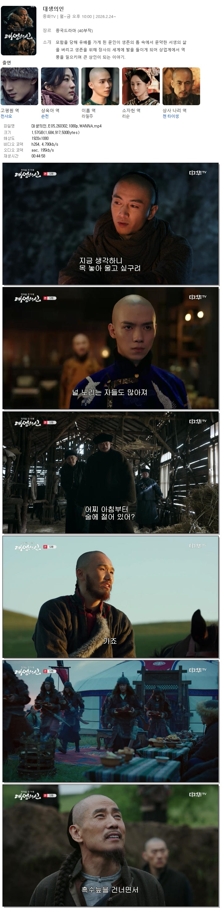 [중화TV] 대생의인.E05.260302.1080p.WANNA[천샤오, 손천] 다시보기 토렌트