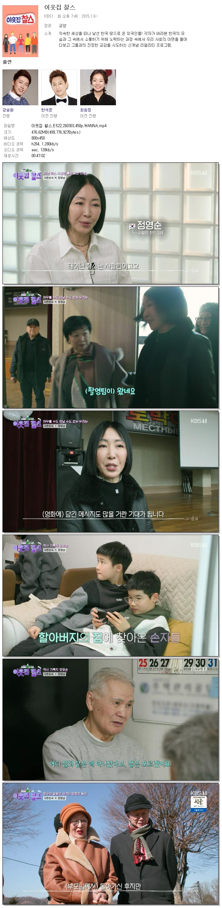 | [KBS1] 이웃집 찰스.E522.260303.450p.WANNA.mp4 | 476.6 M | 00:47:02 | 800x450 |