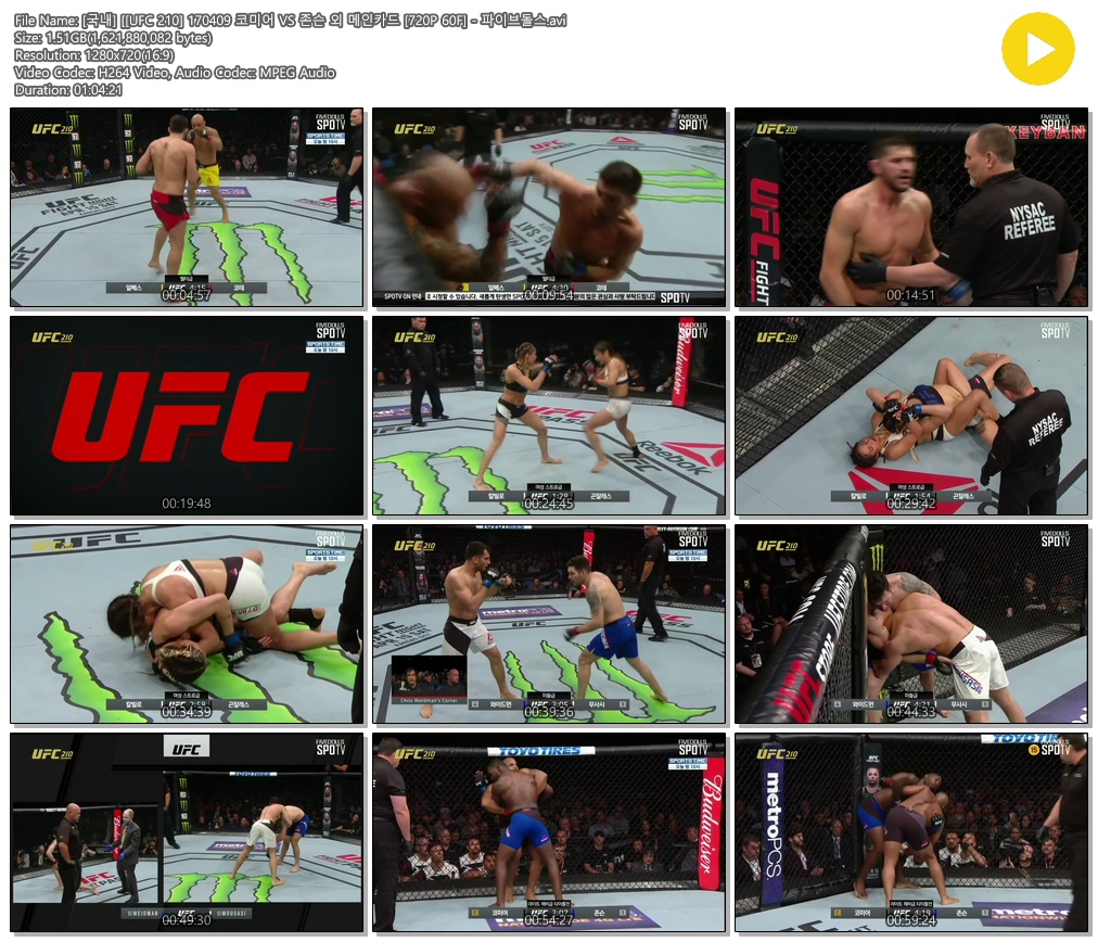 [국내] [[UFC 210] 170409 코미어 VS 존슨 외 메인카드 [720P 60F] - 파이브돌스.avi 1.5 G 01:04:21 1280x720