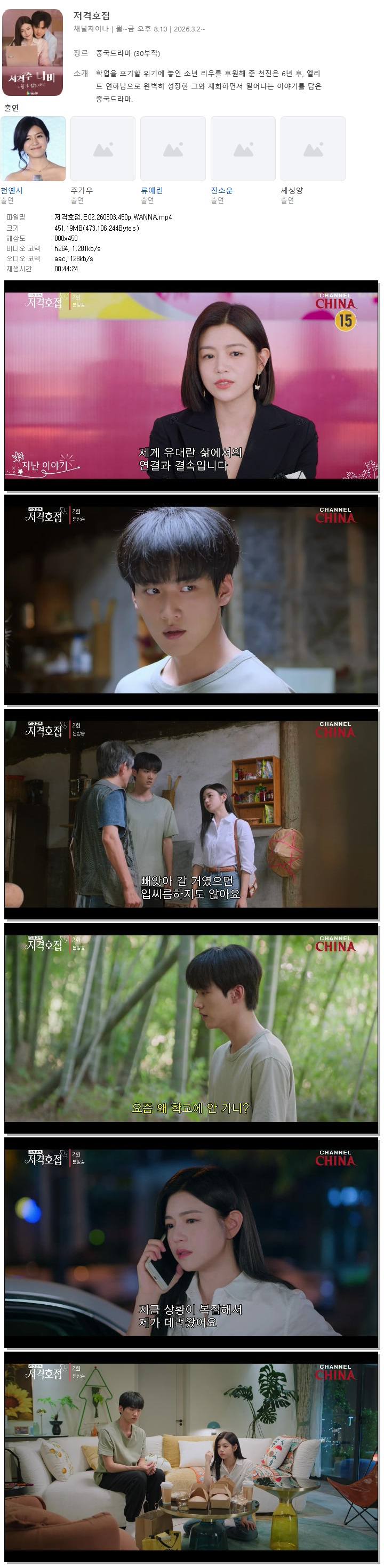 | [채널차이나] 저격호접.E02.260303.450p.WANNA[천옌시, 주가우].mp4 | 451.2 M | 00:44:24 | 800x450 |