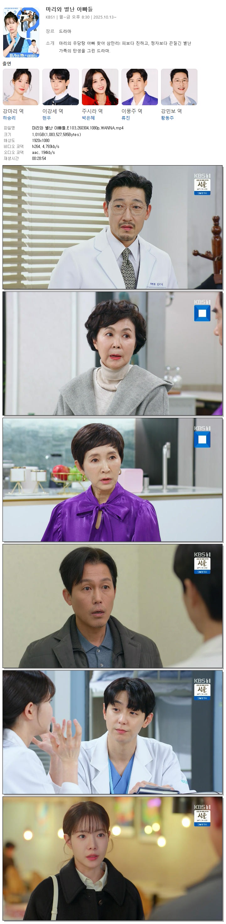 [KBS1] 마리와 별난 아빠들.E103.260304.1080p.WANNA[하승리, 현우] 다시보기 토렌트