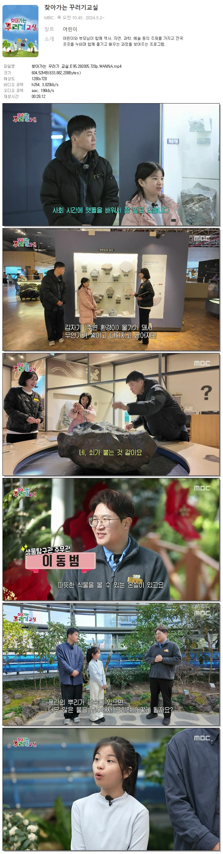 | [MBC] 찾아가는 꾸러기 교실.E95.260305.720p.WANNA.mp4 | 604.5 M | 00:26:12 | 1280x720 |
