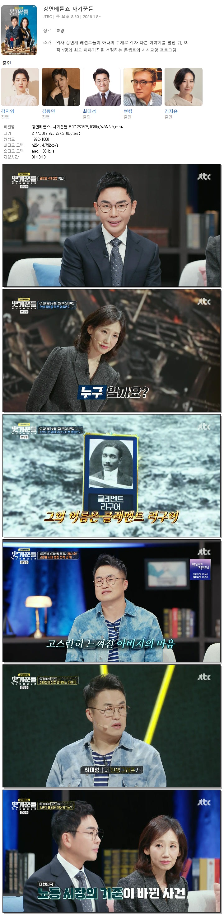 | [JTBC] 강연배틀쇼 사기꾼들.E07.260305.1080p.WANNA[설민석, 최태성].mp4 | 2.8 G | 01:19:19 | 1920x1080 |