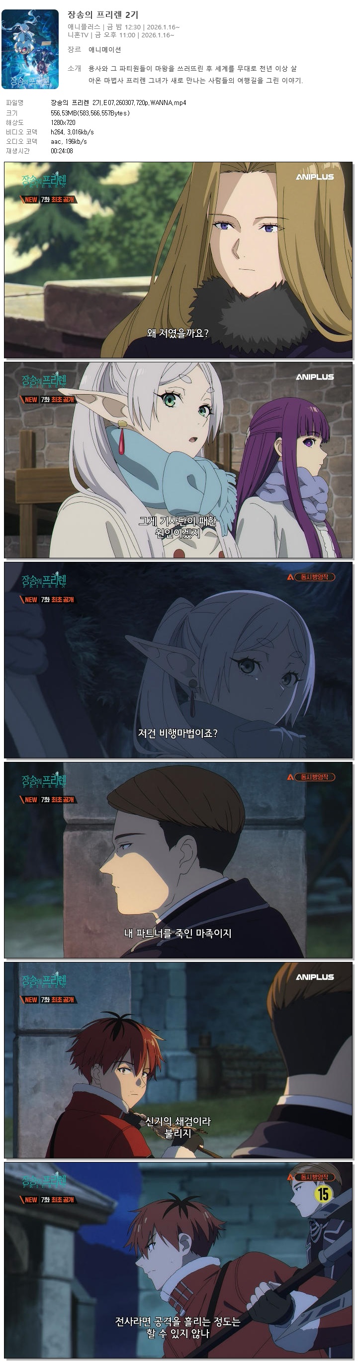 | 장송의 프리렌 2기.E07.260307.720p.WANNA.mp4 | 556.5 M | 00:24:08 | 1280x720 |