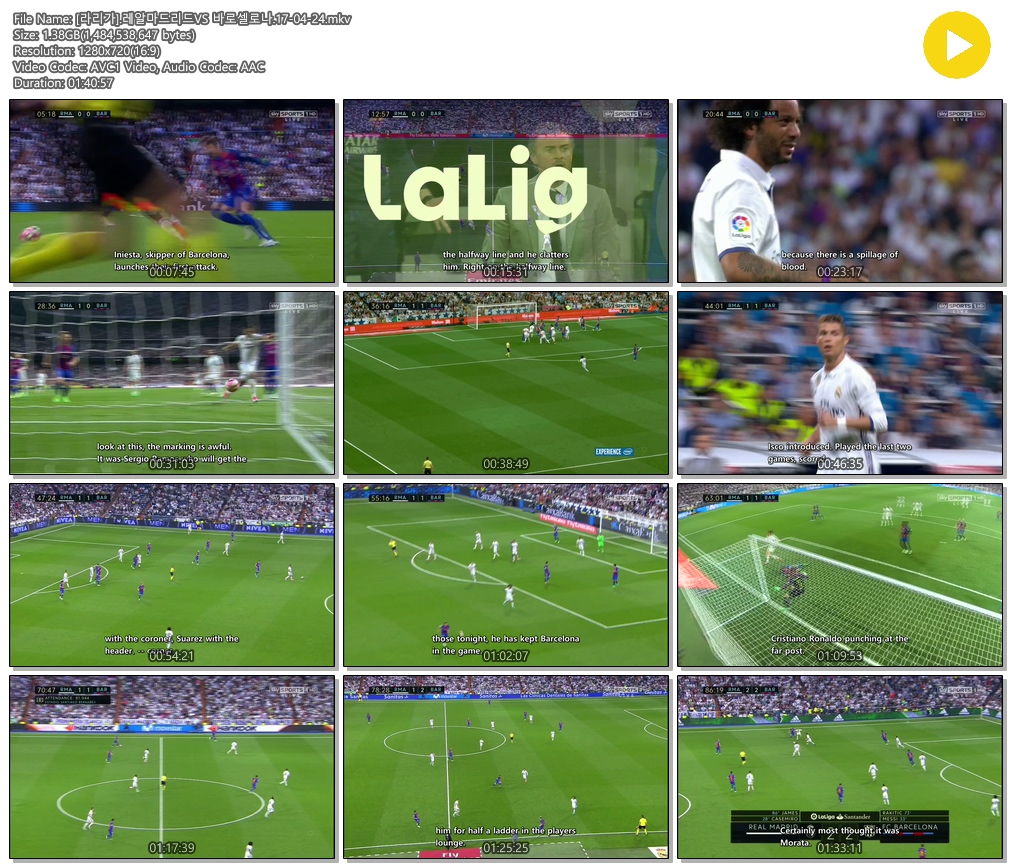| [라리가].레알마드리드VS 바로셀로나.17-04-24.mkv | 1.4 G | 01:40:57 | 1280x720 |