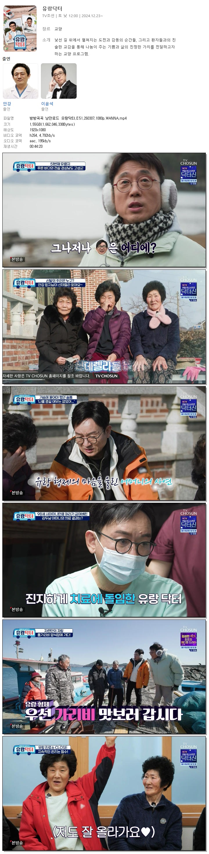 [TV조선] 방방곡곡 낭만로드 유랑닥터.E51.260307.1080p.WANNA[안강, 이윤석].mp4 1.5 G 00:44:20 1920x1080