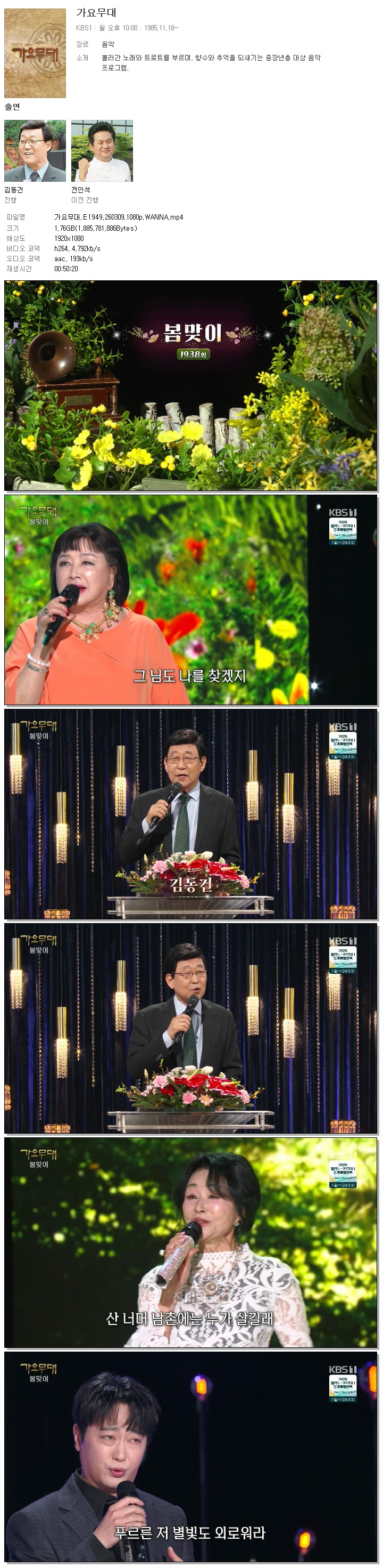 [KBS1] 가요무대.E1949.260309.1080p.WANNA[손빈아, 안성훈].mp4 1.8 G 00:50:20 1920x1080