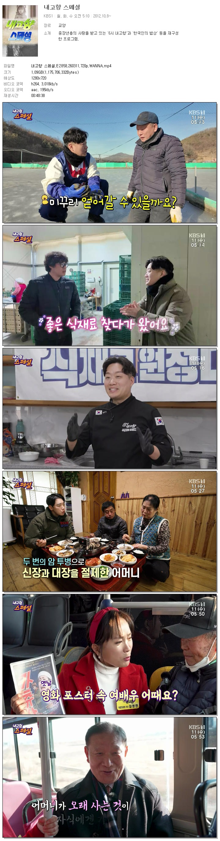[KBS1] 내고향 스페셜.E2858.260311.720p.WANNA.mp4 1.1 G 00:48:38 1280x720