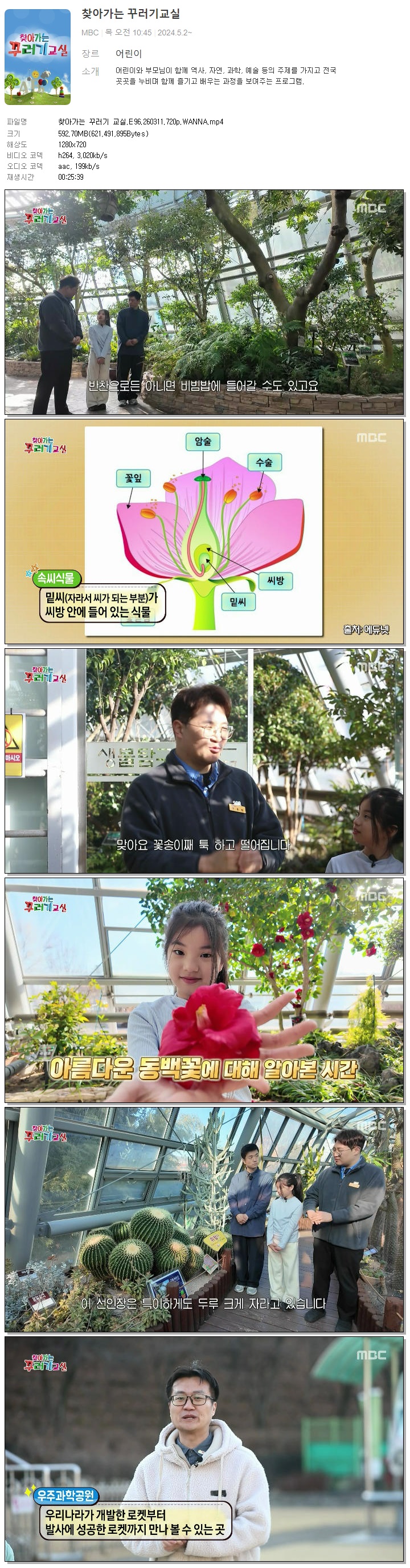 | [MBC] 찾아가는 꾸러기 교실.E96.260311.720p.WANNA.mp4 | 592.7 M | 00:25:39 | 1280x720 |