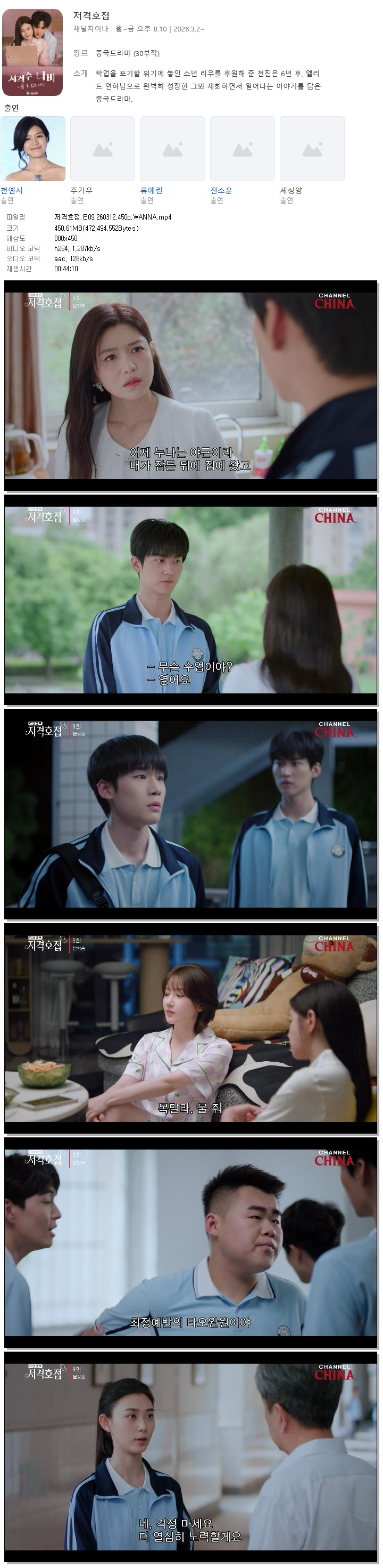 [채널차이나] 저격호접.E09.260312.450p.WANNA[천옌시, 주가우].mp4 450.6 M 00:44:10 800x450