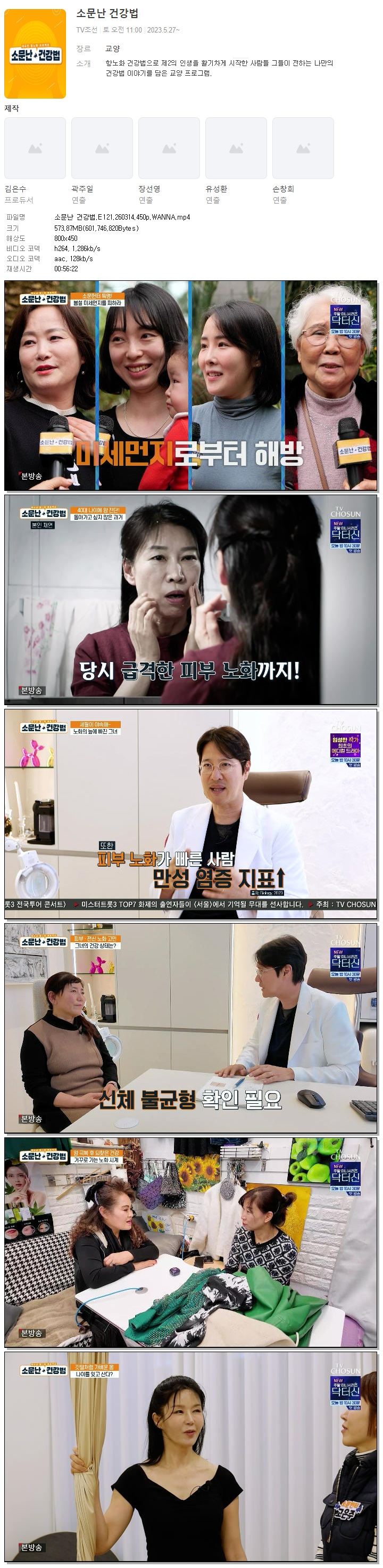 | [TV조선] 소문난 건강법.E121.260314.450p.WANNA.mp4 | 573.9 M | 00:56:22 | 800x450 |