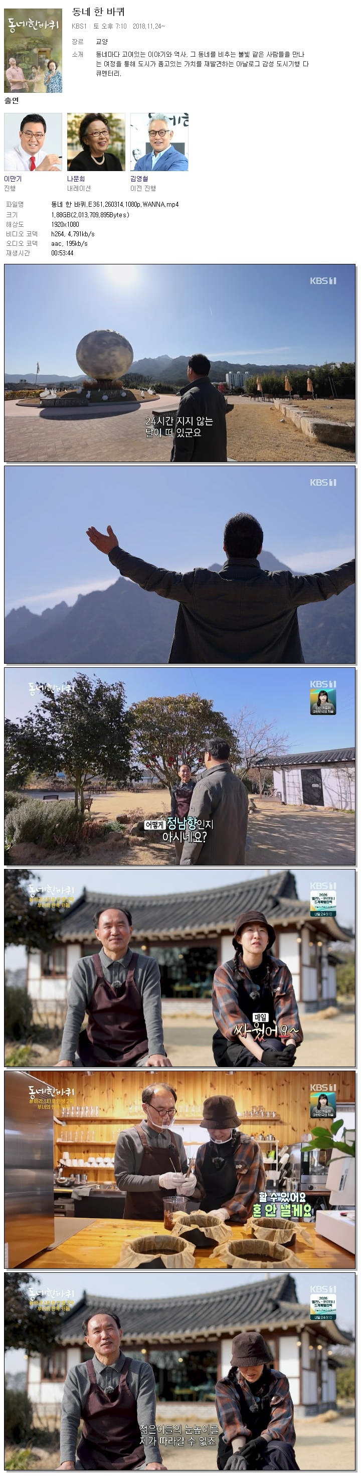 | [KBS1] 동네 한 바퀴.E361.260314.1080p.WANNA[이만기].mp4 | 1.9 G | 00:53:44 | 1920x1080 |