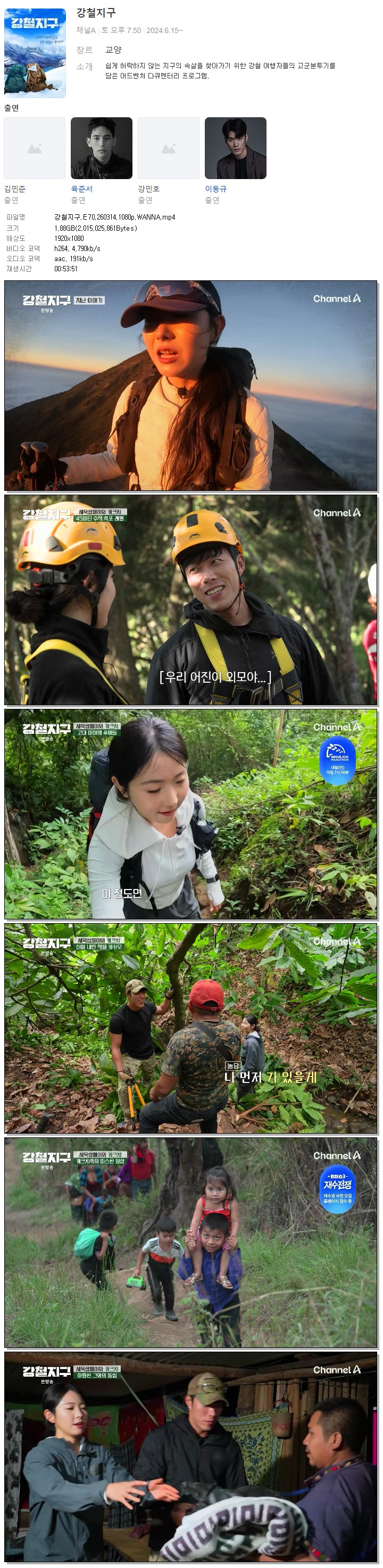 | [채널A] 강철지구.E70.260314.1080p.WANNA.mp4 | 1.9 G | 00:53:51 | 1920x1080 |