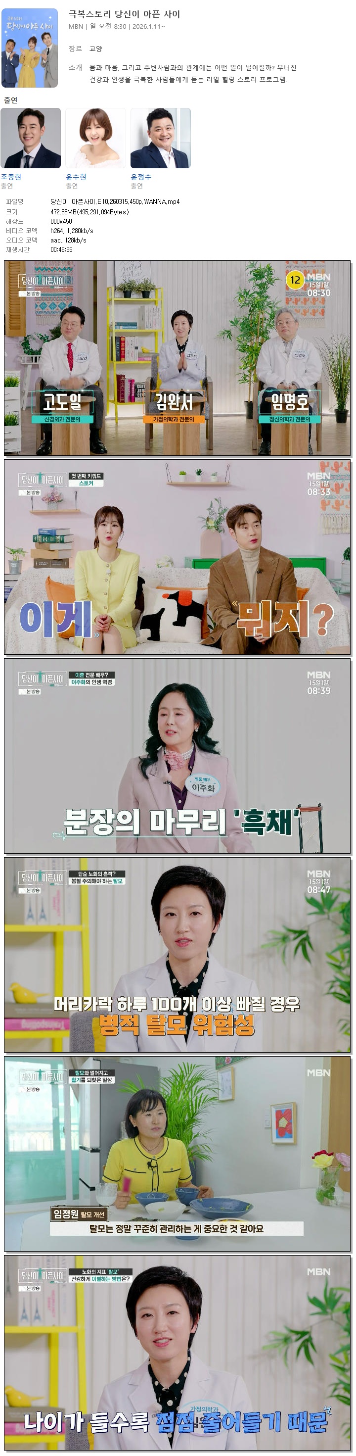 | [MBN] 당신이 아픈사이.E10.260315.450p.WANNA[조충현, 윤수현].mp4 | 472.3 M | 00:46:36 | 800x450 |