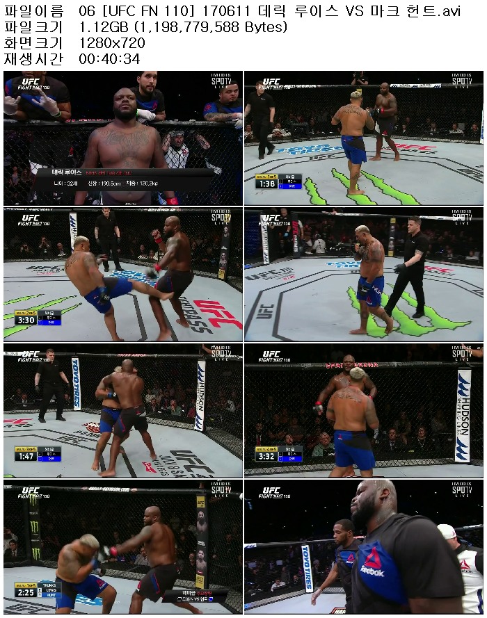 06 [UFC FN 110] 170611 데릭 루이스 VS 마크 헌트.avi 1.1 G 00:40:34 1280x720
