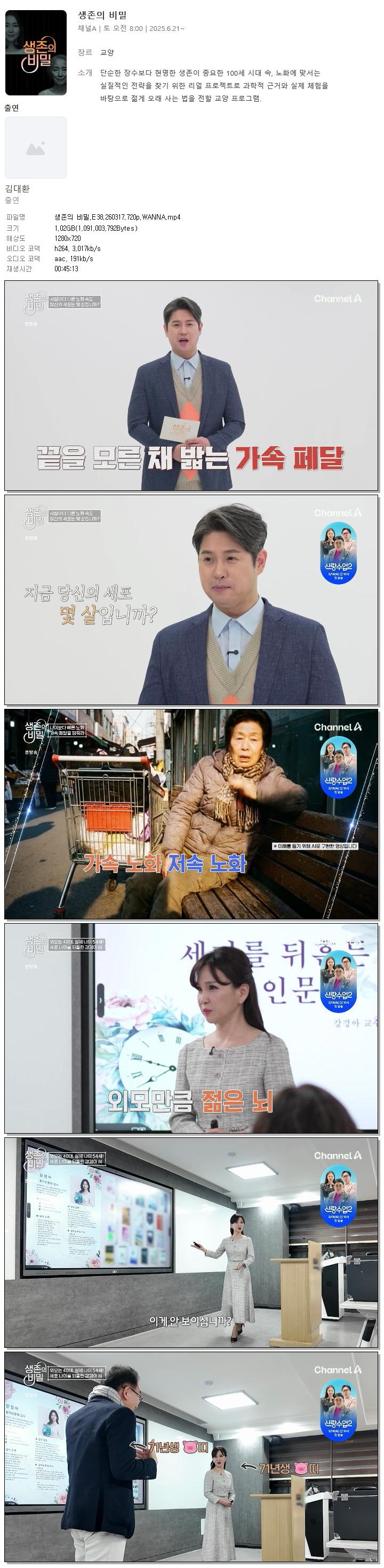 [채널A] 생존의 비밀.E38.260317.720p.WANNA[김대환] 다시보기 토렌트
