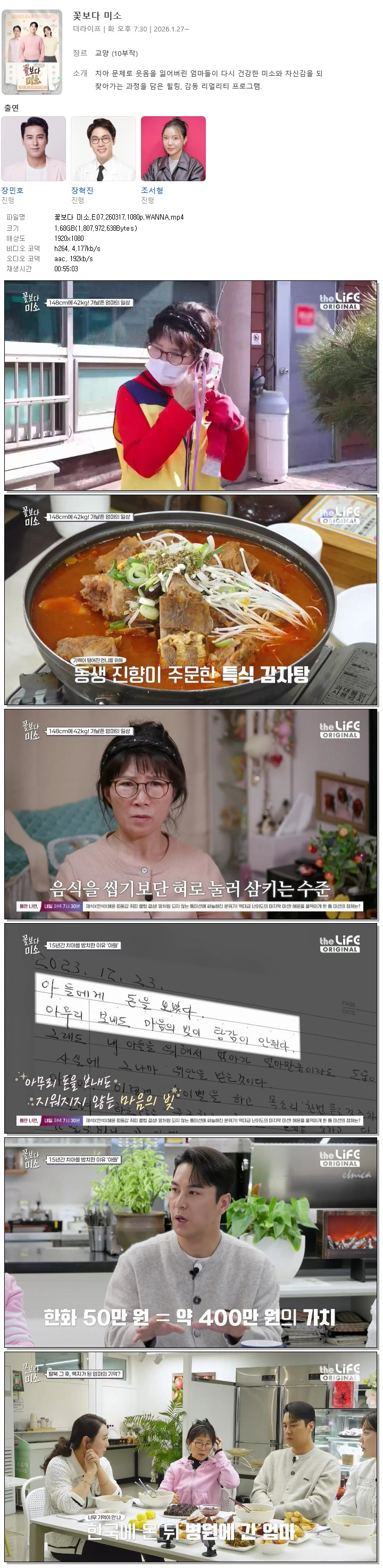 | [더라이프] 꽃보다 미소.E07.260317.1080p.WANNA[장민호, 장혁진].mp4 | 1.7 G | 00:55:03 | 1920x1080 |