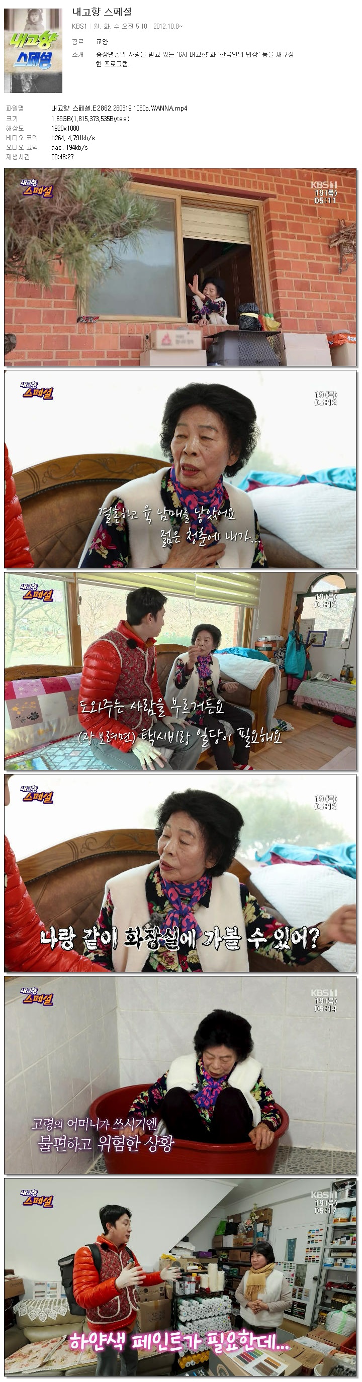 | [KBS1] 내고향 스페셜.E2862.260319.1080p.WANNA.mp4 | 1.7 G | 00:48:27 | 1920x1080 |