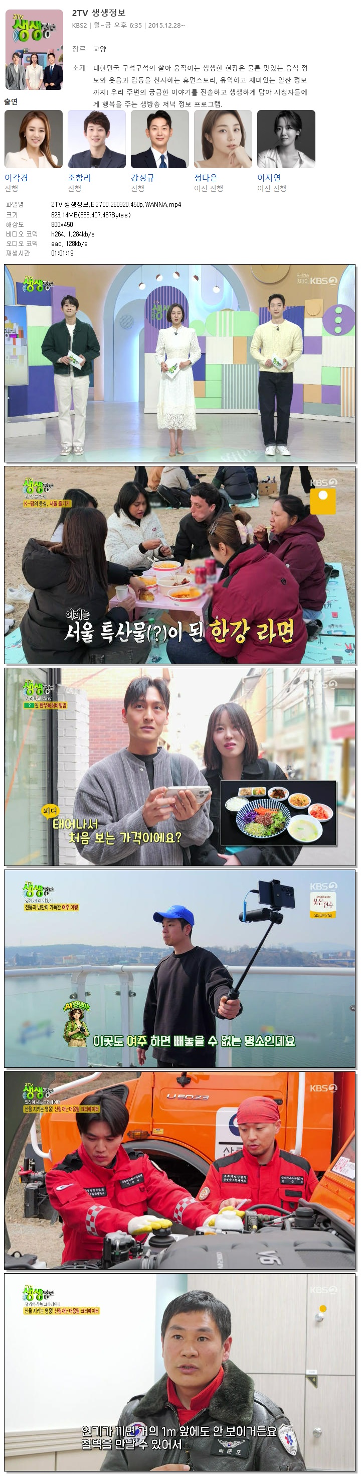 | [KBS2] 2TV 생생정보.E2700.260320.450p.WANNA[이각경, 조항리].mp4 | 623.1 M | 01:01:19 | 800x450 |
