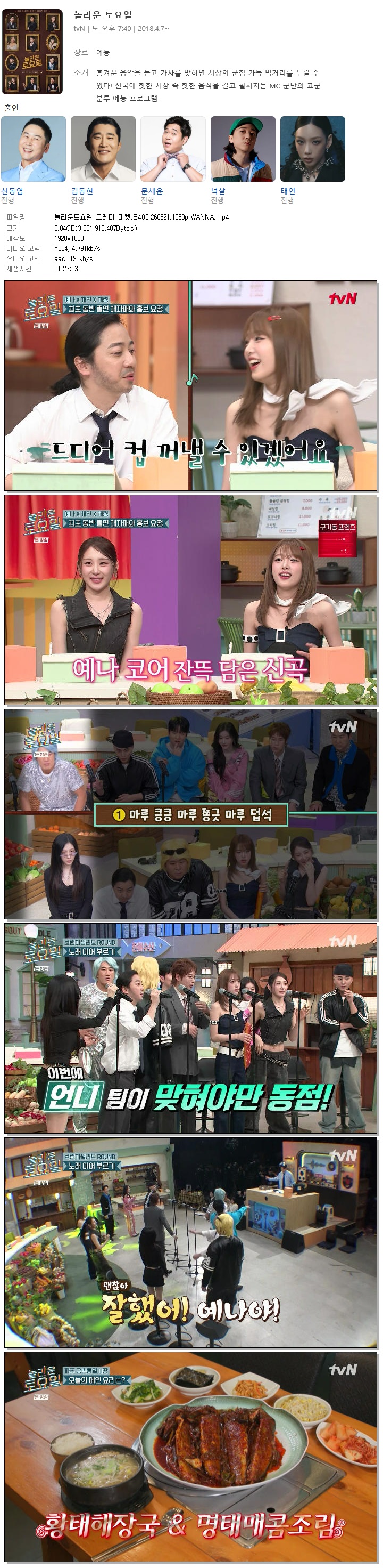 | [TVN] 놀라운토요일 도레미 마켓.E409.260321.1080p.WANNA[채연, 채령].mp4 | 3 G | 01:27:03 | 1920x1080 |