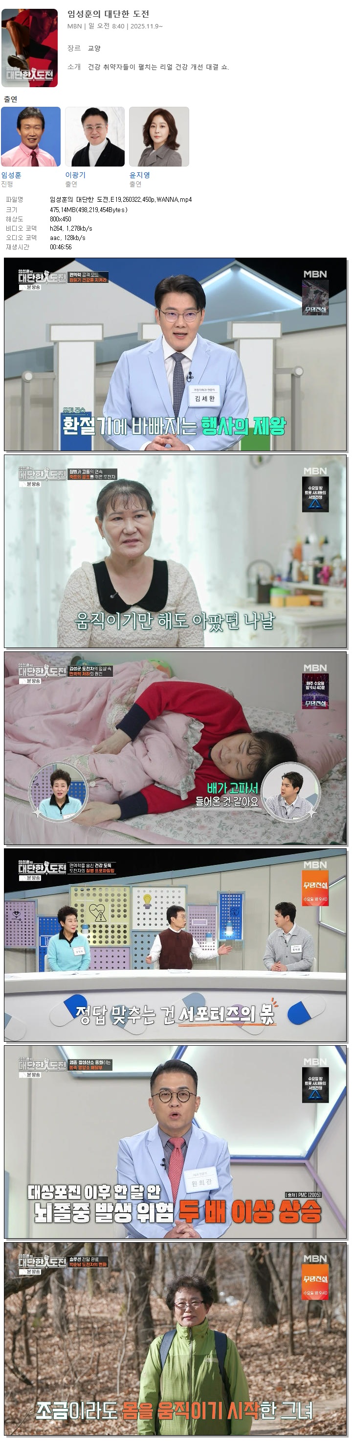 | [MBN] 임성훈의 대단한 도전.E19.260322.450p.WANNA[임성훈, 이광기].mp4 | 475.1 M | 00:46:56 | 800x450 |