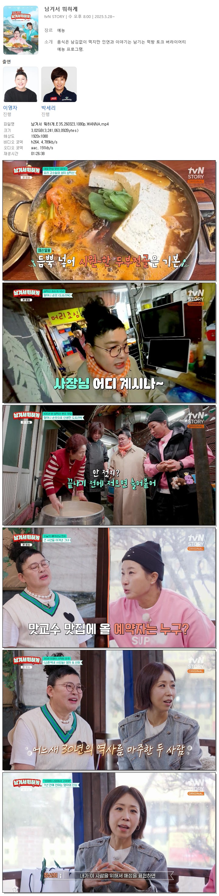 [TVN STORY] 남겨서 뭐하게.E35.260323.1080p.WANNA[이영자, 정선희] 다시보기 토렌트