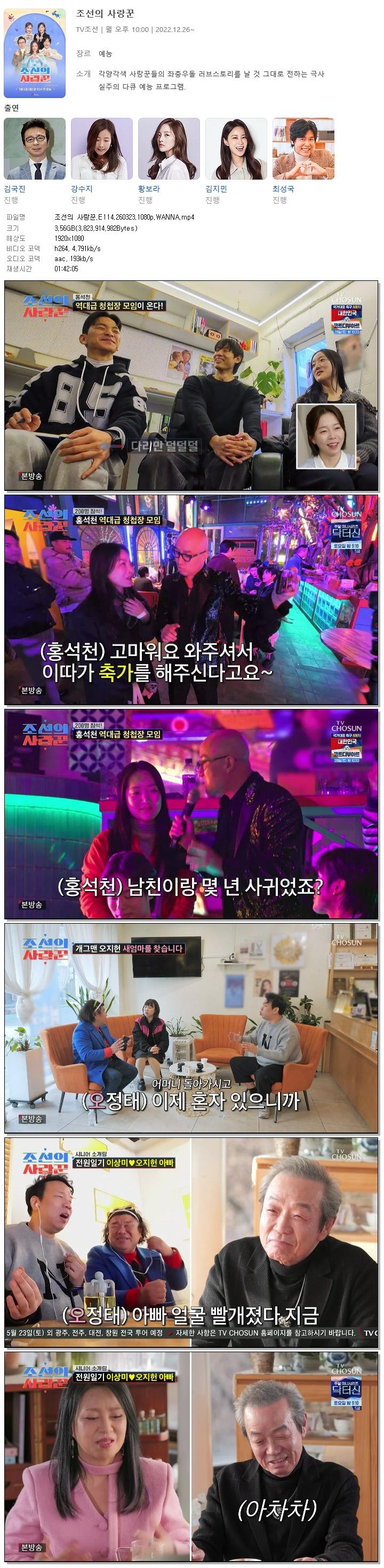 [TV조선] 조선의 사랑꾼.E114.260323.1080p.WANNA[오지헌, 오나미].mp4 3.6 G 01:42:05 1920x1080