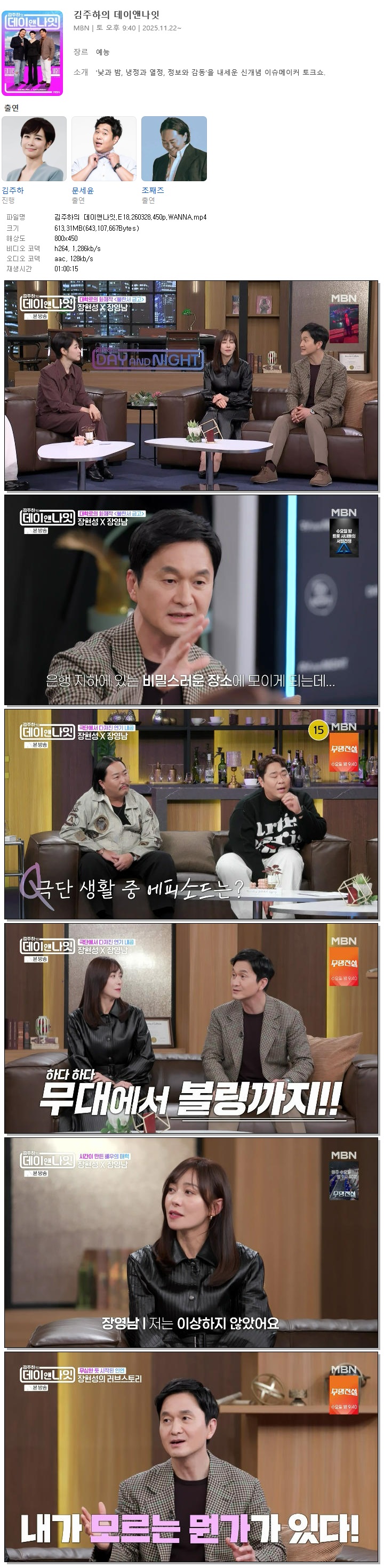 | [MBN] 김주하의 데이앤나잇.E18.260328.450p.WANNA[장현성, 장영남].mp4 | 613.3 M | 01:00:15 | 800x450 |