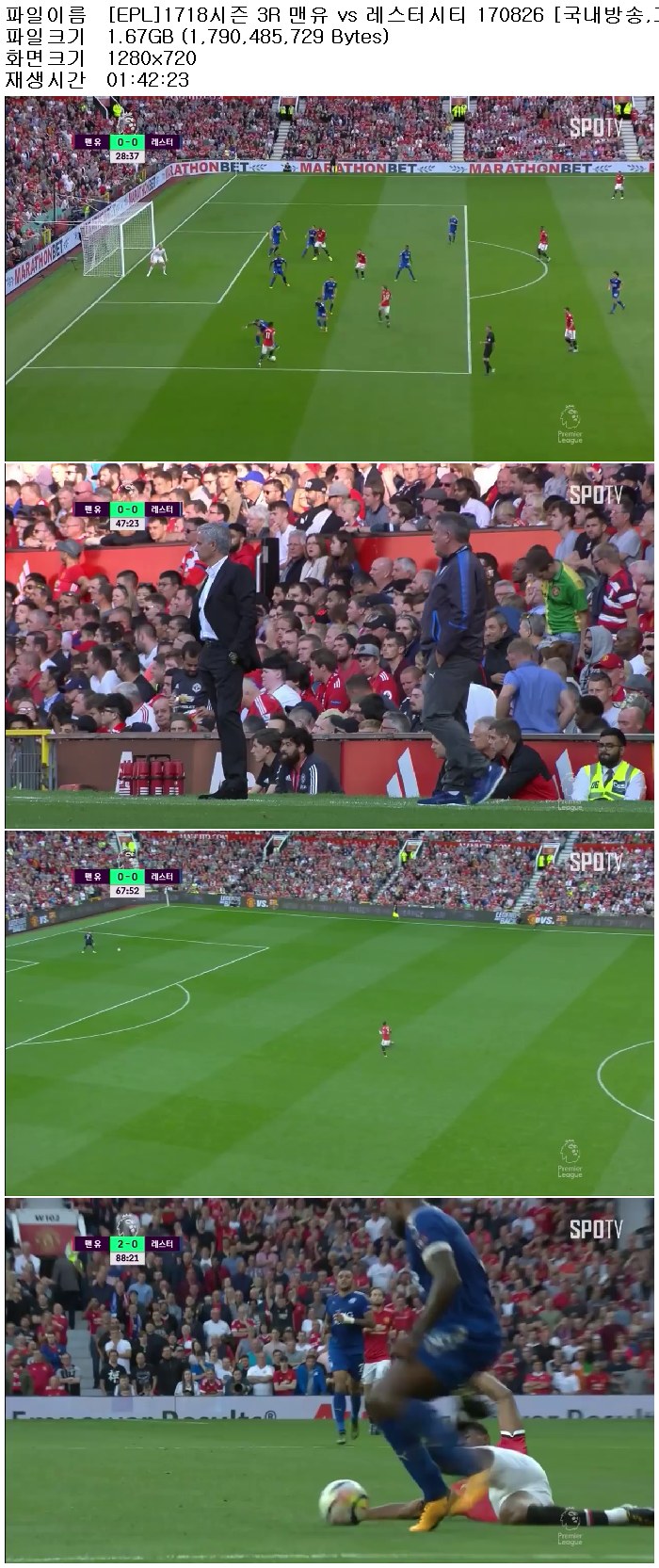 | [EPL]1718시즌 3R 맨유 vs 레스터시티 170826 [국내방송,고화질,720P].mp4 | 1.7 G | 01:42:23 | 1280x720 |