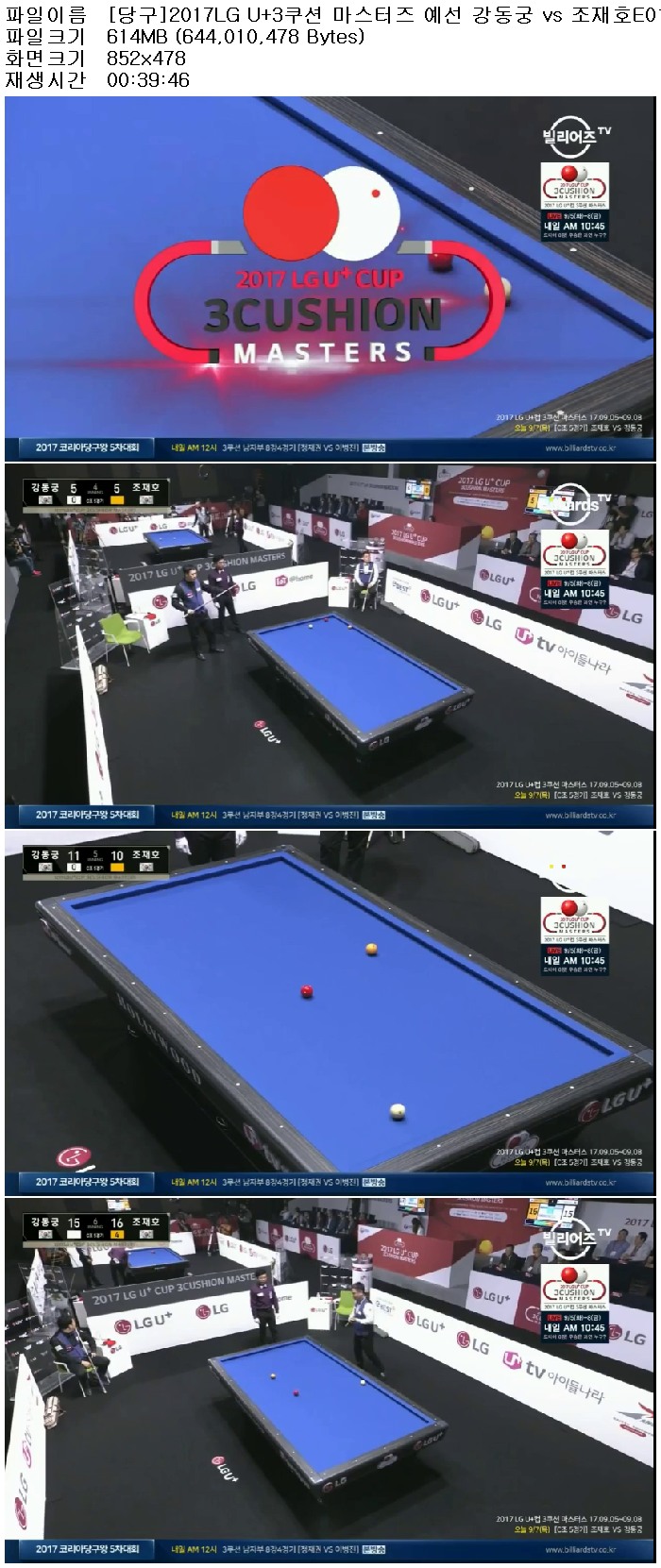 [당구]2017LG U3쿠션 마스터즈 예선 강동궁 vs 조재호 170907 다시보기 토렌트