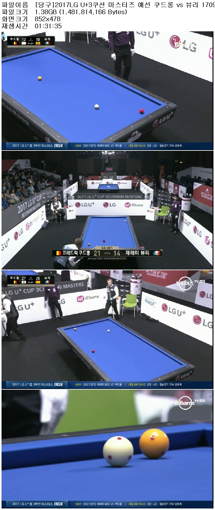 [당구]2017LG U+3쿠션 마스터즈 예선 쿠드롱 vs 뷰리 170907.avi 1.4 G 01:31:35 852x478