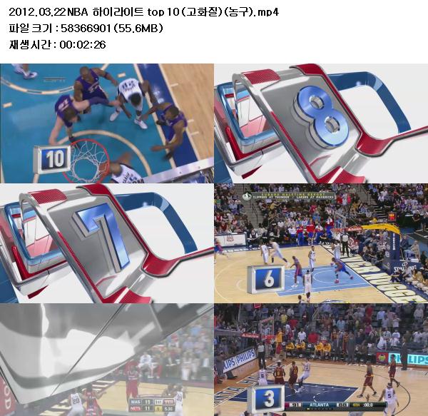| 2012.03.22 NBA 하이라이트 top 10 (고화질) (농구).mp4 | 55.7 M | - | - |
