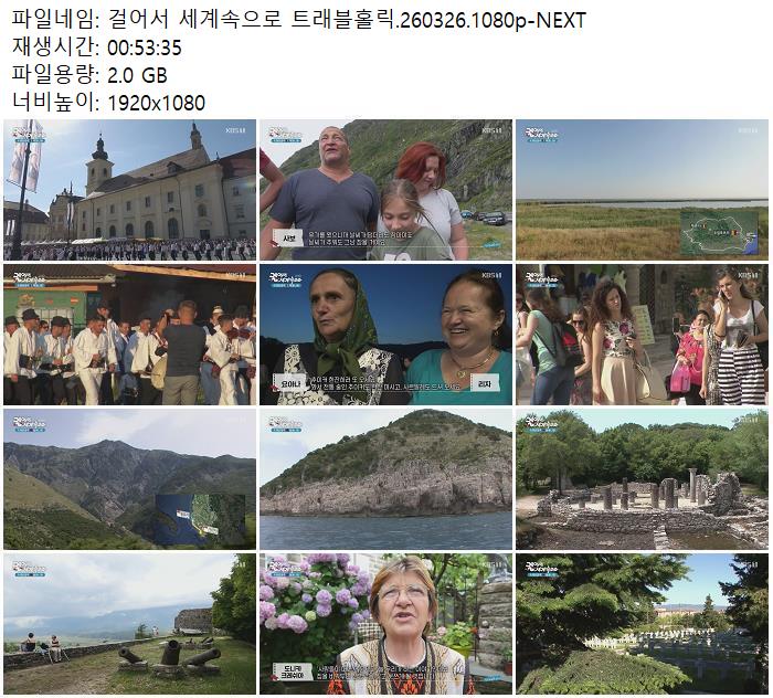 | 걸어서 세계속으로 트래블홀릭.260326.1080p-NEXT.mp4 | 2 G | - | 1920x1080 |