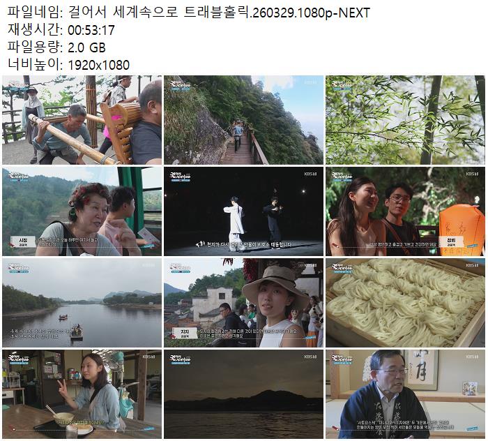 | 걸어서 세계속으로 트래블홀릭.260329.1080p-NEXT.mp4 | 2 G | - | 1920x1080 |