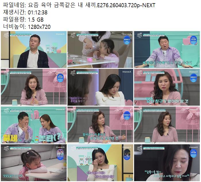 요즘 육아 금쪽같은 내 새끼.E276.260403.720p-NEXT 다시보기 토렌트