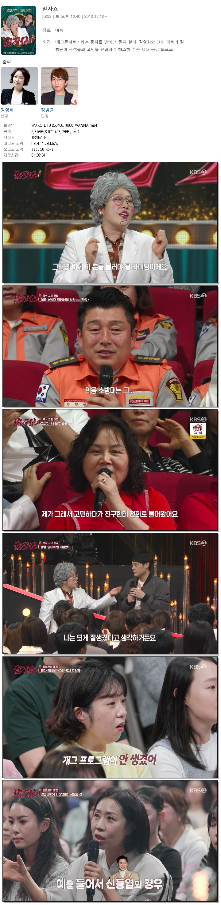 [KBS2] 말자쇼.E13.260406.1080p.WANNA[김영희, 정범균] 다시보기 토렌트