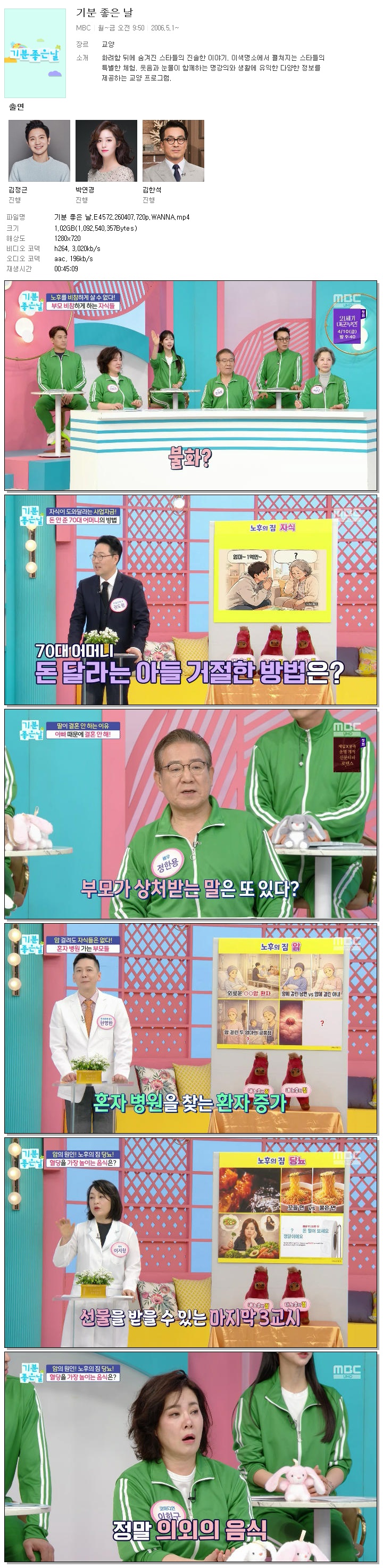 | [MBC] 기분 좋은 날.E4572.260407.720p.WANNA[서인, 박연경].mp4 | 1 G | 00:45:09 | 1280x720 |